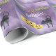 This wrapping paper is designed for the child celebrating a birthday near Halloween. The design features watercolor graphics of pumpkins and a cute black cat on the watercolor purple background.