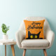 Halloween Black Cat Distressed Texture Orange Throw Pillow