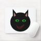 This mousepad features a black cat with pointed ears, bright green eyes and a sly red grin. This creepy kitty is perfect for Halloween or for cat lovers.