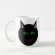 This stylish mug features a black cat with pointed ears, bright green eyes and a sly red grin. This creepy kitty is perfect for Halloween or for cat lovers.