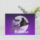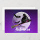 Halloween Black Cat on Broom Full Moon Holiday Card