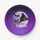 Halloween Black Cat on Broom Full Moon Paper Plate