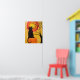 This poster features a painting of a black cat sitting on a pumpkin looking at the Halloween moon.