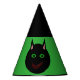 This awesome party hat features a black cat with pointed ears, bright green eyes and a sly red grin. This creepy kitty is perfect for Halloween or for cat lovers.
