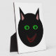 This awesome plaque features a black cat with pointed ears, bright green eyes and a sly red grin. This creepy kitty is perfect for Halloween or for cat lovers.