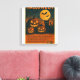 Halloween Black Cat & Pumpk Stretched Canvas Print