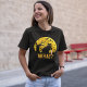 Halloween design with image of a black cat with a knife under the full moon and the word "what? , Fun and sarcastic design ideal for halloween parties. Feel free and get yours now.