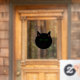 This awesome shaped window cling features a black cat with pointed ears, bright green eyes and a sly red grin. This creepy kitty is perfect for Halloween or for cat lovers.