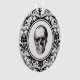 Décor en cercle acrylique avec un motif gothique noir et blanc d'Halloween élégant et design crâne noir et un message texte personnalisé sur le côté arrière. Accessoires et décors correspondants disponibles au ScriptoGraphic Design Store.