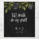 Rustic and gothic halloween theme wedding wine bottle label featuring illustration of black roses. The text says "Till death do us part."