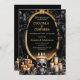 Elegant and spooky black, gold & silver invitation with skull and candles.