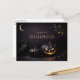A refined, luxury-inspired design that transforms classic Halloween symbolism into a couture card. Set against a rich matte black and deep midnight backdrop, sleek black pumpkins glow subtly with warm golden light, accompanied by a poised raven and a delicate crescent moon. Gold typography reading “Happy Halloween” is centered with confident spacing, creating an elegant focal point that feels dramatic yet restrained.