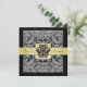 Halloween Black Mask Damask Gold Ribbon Invitation