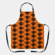 This awesome apron features a spooky black spider with eight hairy legs, yellow eyes with big black pupils and its mouth open showing its fangs. There is orange text that reads “Happy Halloween” and a matching orange background.