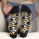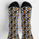 Halloween harlequin pattern with black, white, and orange colours on customizable socks for women. There are bats, skulls, black cats, jack o lanterns, spiders, and crescent moons to add a spooky cute look to this classic Halloween diamond design. Fun to wear during October or use as part of a Halloween costume. Adjust the pattern size to you liking and add your favourite background colour instead of the white.