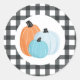 Halloween blue Pumpkins black Plaid Classic Round Sticker