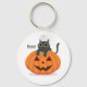 Halloween boo black cat on pumpkin jack o lantern keychain