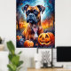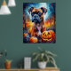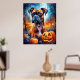 Get your furry friend ready for a howling good time with this adorable dog-inspired Halloween design! Featuring a spooky dog with pumpkins, this design is perfect for pet parents who want to include their four-legged family