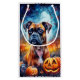 Get your furry friend ready for a howling good time with this adorable dog-inspired Halloween design! Featuring a spooky dog with pumpkins, this design is perfect for pet parents who want to include their four-legged family