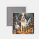 Halloween Brittany Spaniel With Pumpkins Scary Magnet
