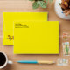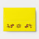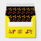 A custom return address envelope with retro letters on the front and a colourful pattern of Halloween candy corn in yellow and orange on the inside.