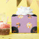 A fun Halloween personalized wrapping paper with a candy theme, in orange and black over a lilac background. Elegant, modern, simple and classy, a lovely choice for a girl celebrating her sixteenth birthday on or around Halloween, for a little pumpkin birthday or any birthday or Halloween party where you will be wrapping presents.