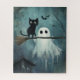 Halloween Cat and Ghost Flying on Broom Jigsaw Puzzle