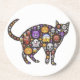 COLORFUL HALLOWEEN CAT WITH PUMPKINS, GHOSTS, DEVILS AND SKULL HEADS.
