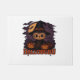 Halloween Cats Pumpkins Black Background Illus Doormat