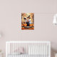 Add festive charm to your home with this adorable Halloween cats poster. Featuring three playful cats in witch hats surrounded by pumpkins in a glowing autumn forest, this artwork blends spooky fun with heartwarming cuteness. Perfect for Halloween décor, kids’ rooms, or cat lovers who enjoy seasonal art with a whimsical touch.