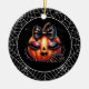 Halloween party ceramic ornament is shown with a glam pumpkin babe.