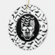 Halloween party ceramic ornament is shown with a spooky skull print on a bats white colour background.