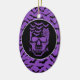 Halloween party ceramic ornament is shown with a spooky skull print on a bats purple colour background.