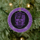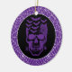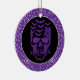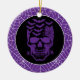 Halloween party ceramic ornament is shown with a spooky skull print on a spiderweb purple colour background.