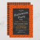 Throw a Halloween party with a chalkboard invite on a classic black and orange plaid. Easily change the details in the custom section.
