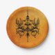 A silhouette of an elegant Halloween chandelier is set against a shadowy, distressed background in warm shades of gold and orange. The creepy chandelier appears classic at first glance, but closer inspection will reveal that it is also comprised of various ghoulish components such as bones, a skull and a bat. Please check my shop for other coordinating party supplies to complete your event!