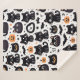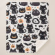 Cute couverture sherpa à motif halloween avec graphisme de chat noir, chauves-souris et citrouilles.