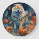 Halloween Chow Chow With Pumpkins Scary Large Clock