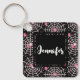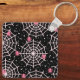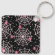 A key chain with a cute seamless pattern with pink spiders and cobwebs.