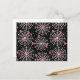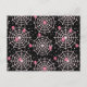 A postcard with a cute seamless pattern with pink spiders and cobwebs.