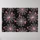 A poster with a cute seamless pattern with white cobwebs and pink spiders.