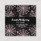 A business card with a cute seamless pattern with white cobwebs and pink spiders.