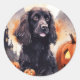 Halloween Cocker Spaniel With Pumpkins Classic Round Sticker