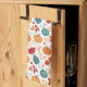 Halloween Colourful Pumpkins and Leaves kitchen towel with red, orange, brown, and blue colours.