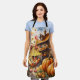 A whimsical creature with large ears and bright eyes stands joyfully on a cobblestone path lined with vibrant pumpkins. The scene is set in a charming village with quaint wooden houses under a bright, blue sky. Digital Art