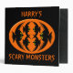 Ce classeur éffrayant d'Halloween pour enfants présente un ovale orange avec six corbeaux. Chaque corbeau a des yeux jaunes avec des élèves noirs et des ailes étirées. Les corbeaux volent vers l'autre formant une forme ovale. Le classeur est noir à l'intérieur et à l'extérieur. La conception apparaît à l'avant et à l'arrière du classeur. Sur le devant est entouré de texte orange déplaisant et personnalisable. La colonne vertébrale contient également du texte personnalisable. Cela vous permet de mettre le nom de votre enfant sur le classeur et de le leur donner comme un cadeau d'Halloween. C'est le classeur parfait pour mettre tous vos dessins d'Halloween enfants dans.