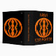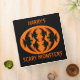 This spooky Halloween kids drawings binder features an orange oval with six crows in it. Each crow has yellow eyes with black pupils and outstretched wings. The crows are flying towards each other forming an oval shape. The binder is black inside and out. The design appears on the front and back of the binder. On the front is is surrounded by creepy, customizable orange text. The spine also has customizable text on it. This allows you to put the name of your child on the binder and give it to them as a Halloween present. This is the perfect binder to put all your childs Halloween drawings in.