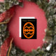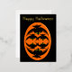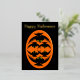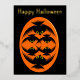 This awesome foil postcard features an orange oval with six crows in it. Each crow has yellow eyes with black pupils and outstretched wings. The crows are flying towards each other forming an oval shape. The background is black. There is custom text in beautiful gold foil so you can include a message. The default message reads Happy Halloween.