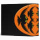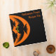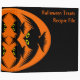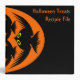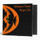 This spooky Halloween recipe file features an orange oval with six crows in it. Each crow has yellow eyes with black pupils and outstretched wings. The crows are flying towards each other forming an oval shape. The background is black. There is customizable creepy orange text at the top right corner of the binder that says, "Halloween treats recipie file" This is the perfect place to organize and keep all your Halloween recipes. Why not get the kids in the kitchen to help you whip up a tasy treat or two. They are sure to lve this recipe file almost as much as the recipes inside it.