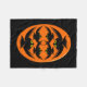 This awesome fleece blanket features an orange oval with six crows in it. Each crow has yellow eyes with black pupils and outstretched wings. The crows are flying towards each other forming an oval shape. The background is black.